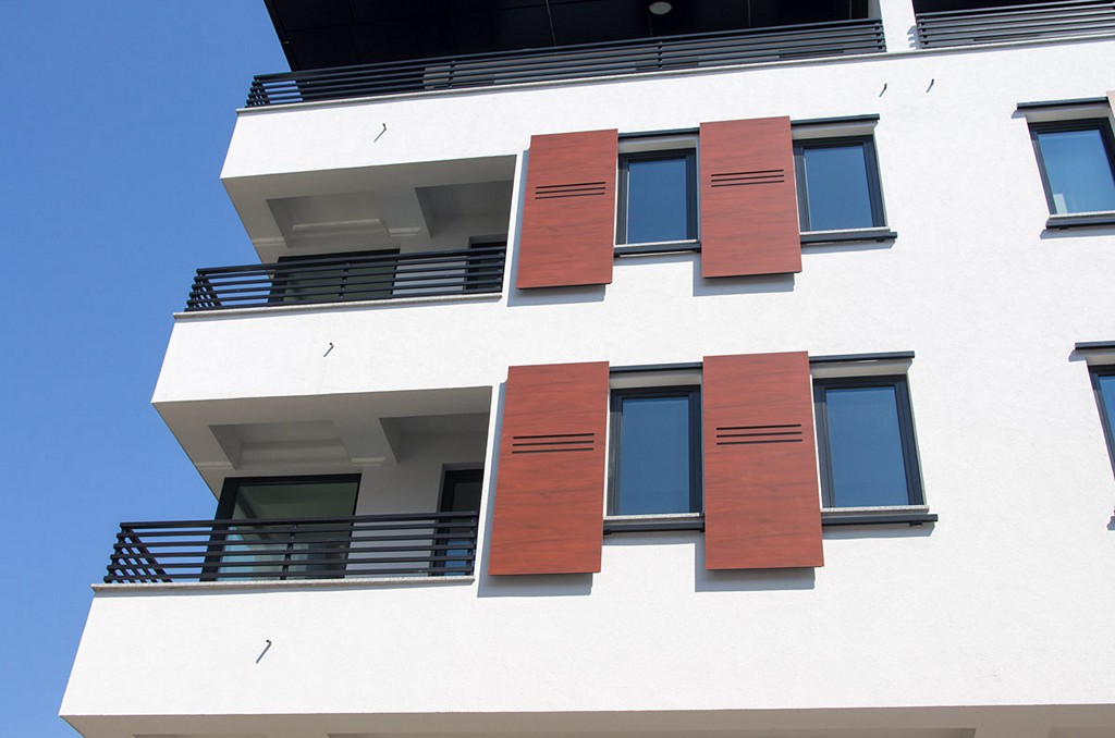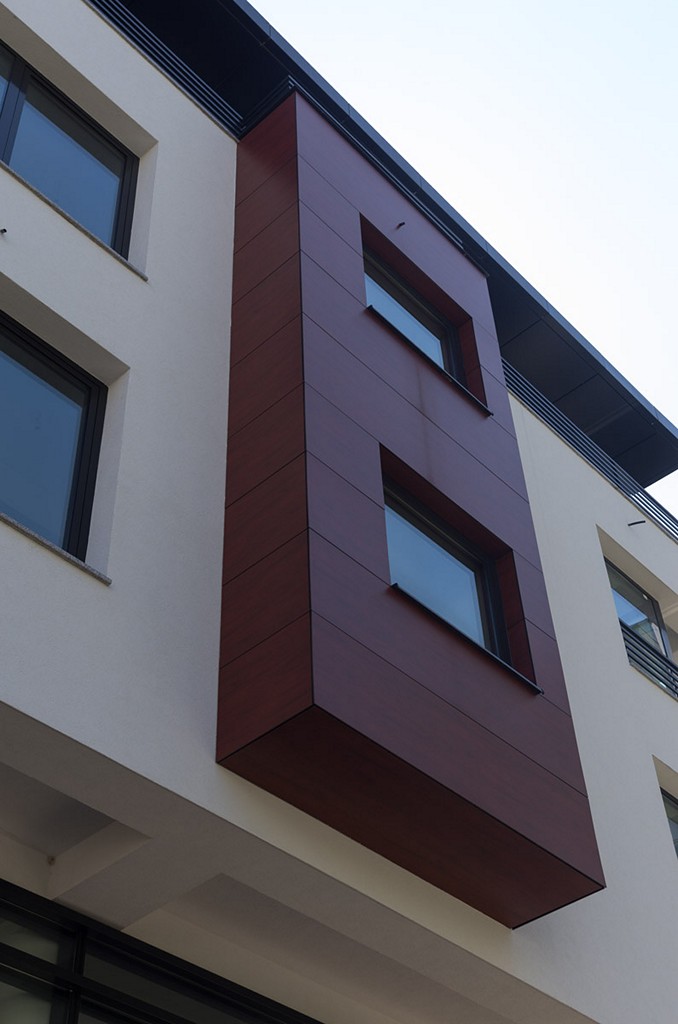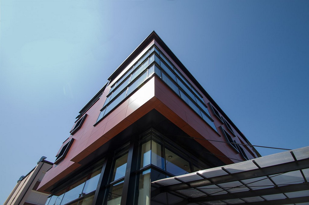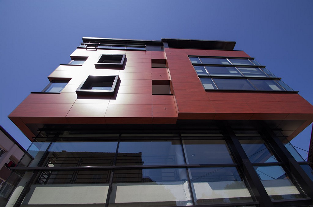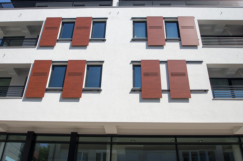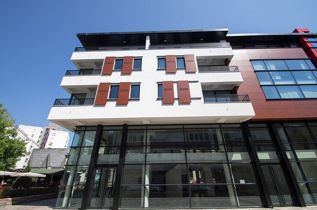 Objekat Agencije za vrjedonosne papire u Banjaluci. Trespa fasada sa ALU prozorima i vraitma, te mali kuriozitet automatske grilje na prozorima.